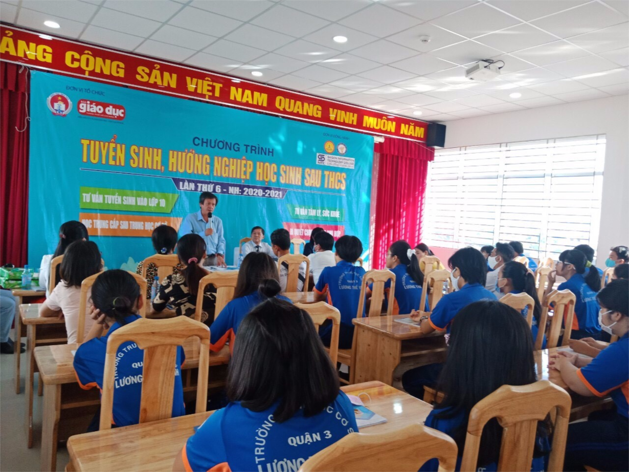 Sở GDĐT TPHCM kết hợp với Báo Giáo Dục đã tổ chức chương trình tuyển sinh, hướng nghiệp học sinh sau tốt nghiệp THCS tại trường THCS Lương Thế Vinh.